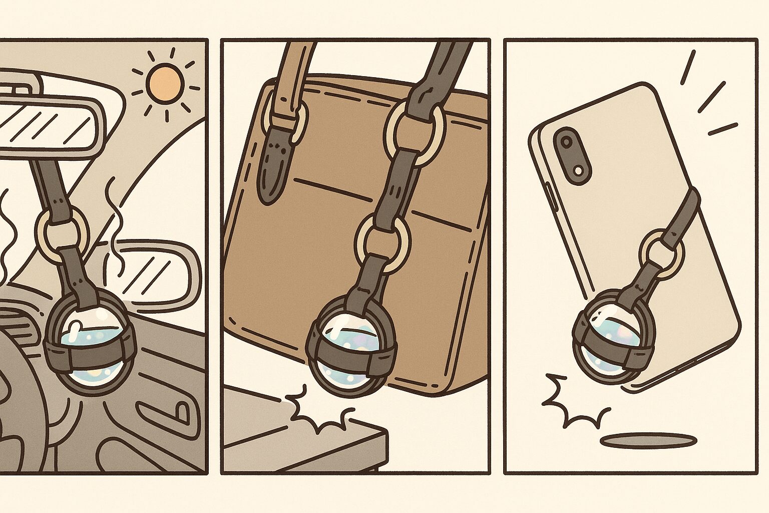 実際に作家の私自身が スマホのキーホルダーとして持ち歩いてテスト をしましたが、光の入り方で印象が変わり、つい手元で眺めてしまうほどです。