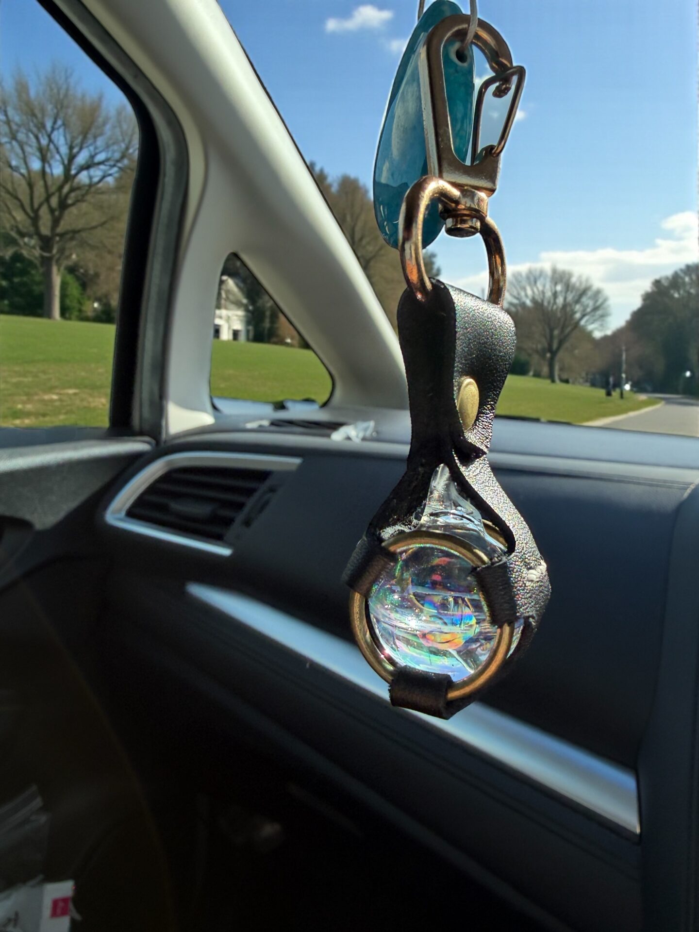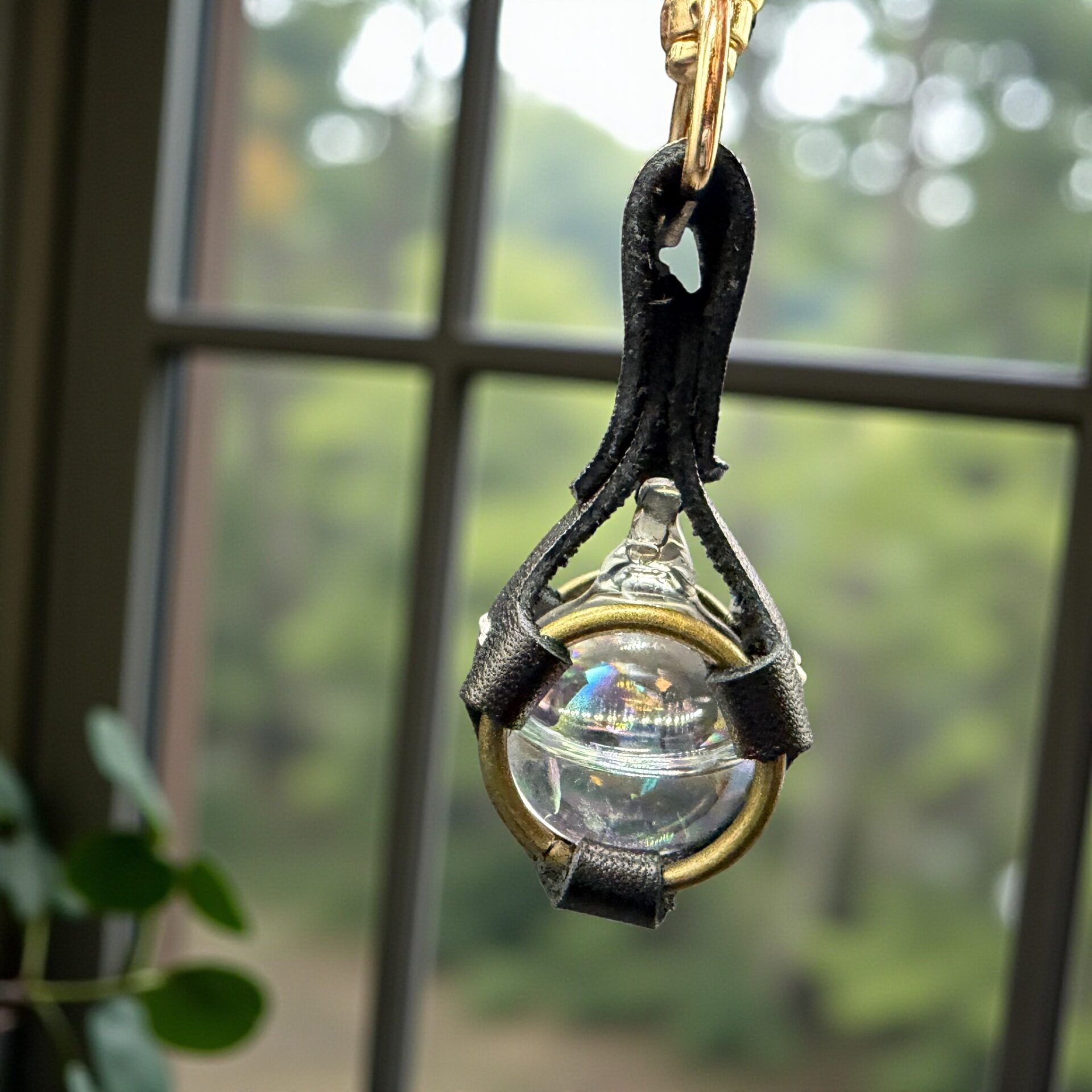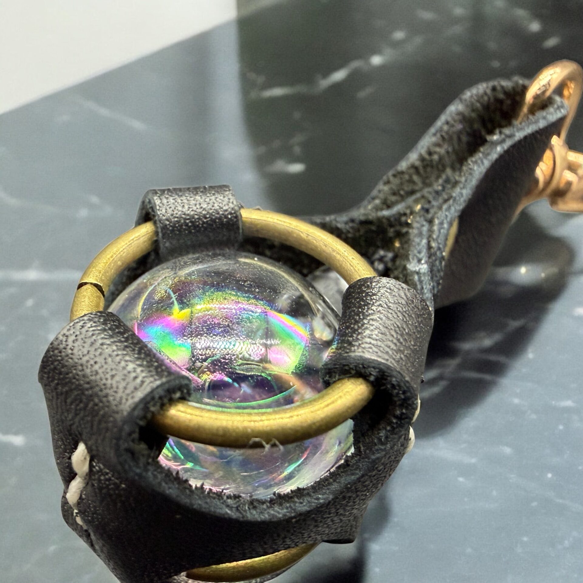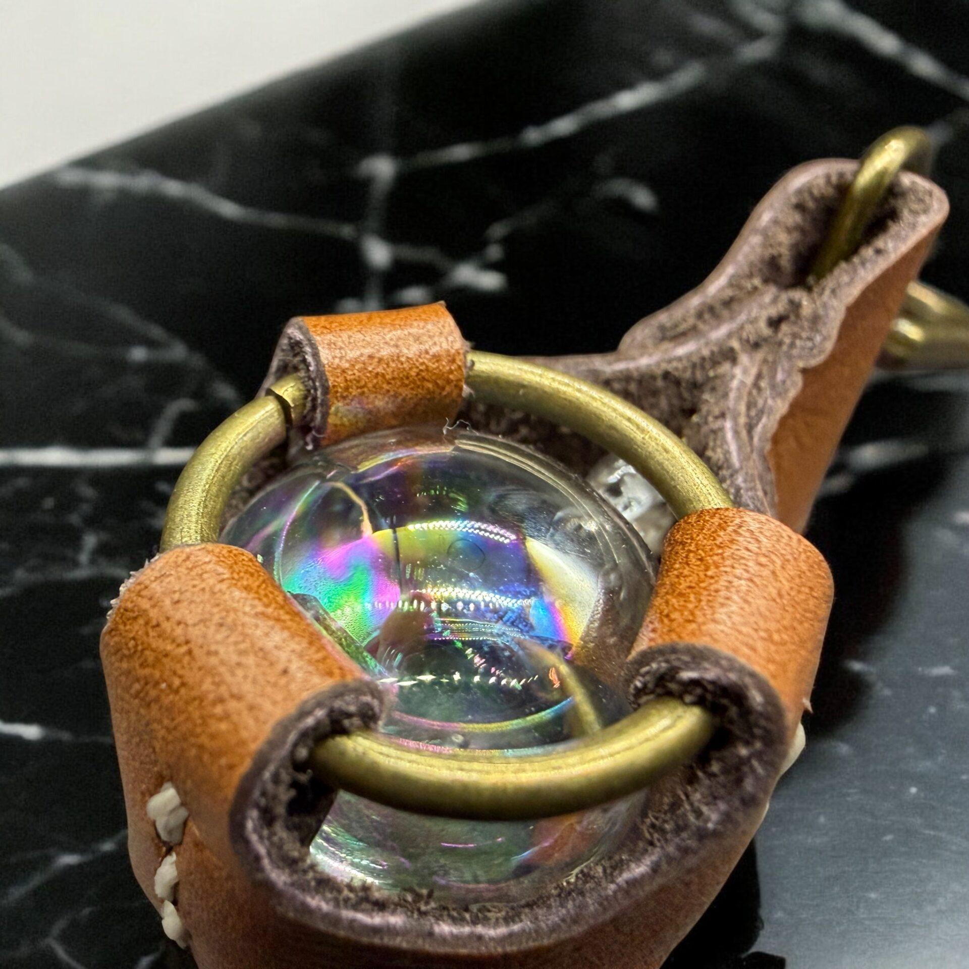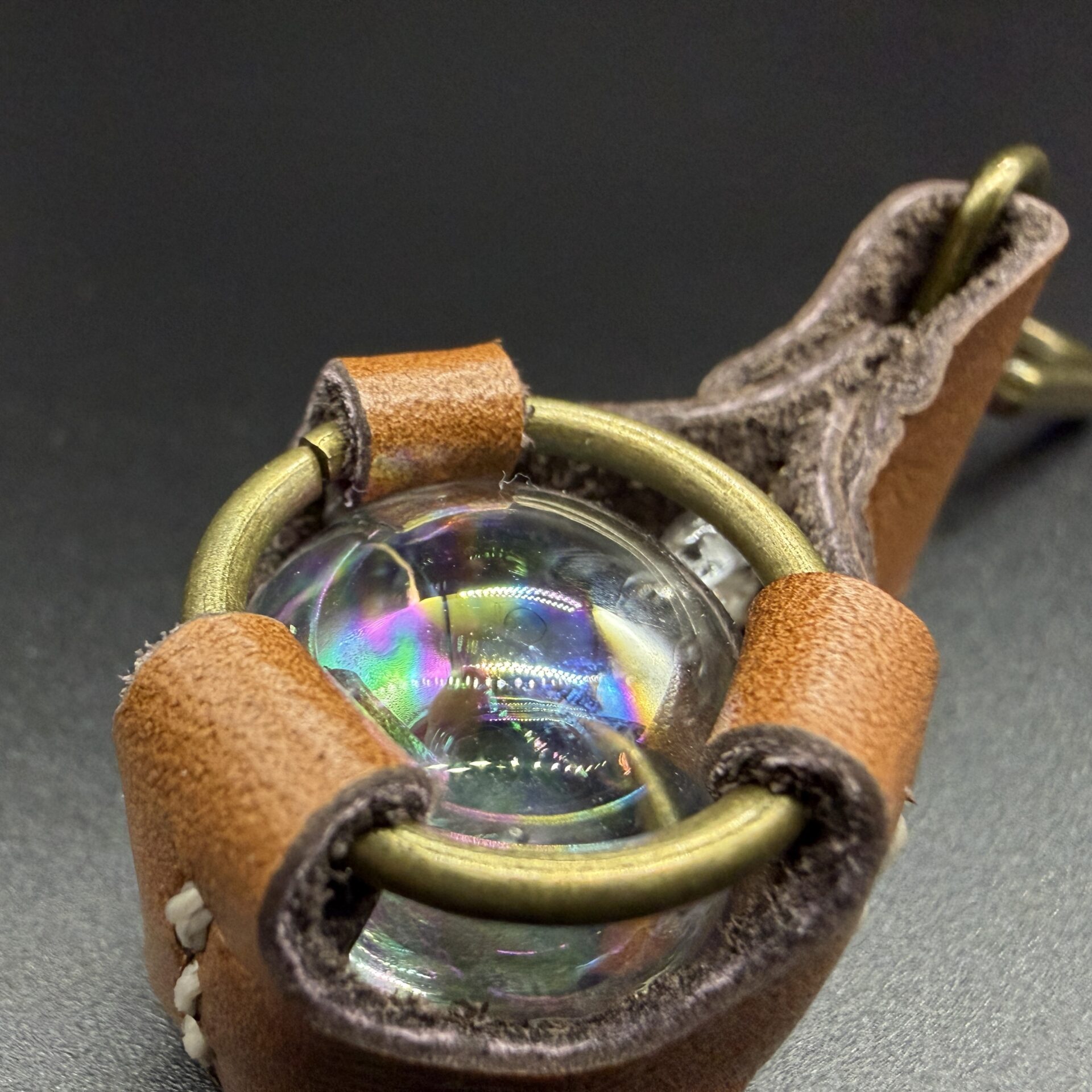 新作発表・シャボン玉ガラスのレザーキーホルダー|水入りガラスドーム|オーロラカラー