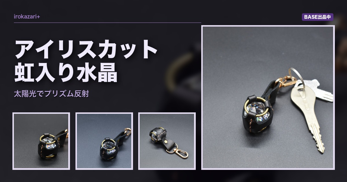 - 素材:天然石(虹入り水晶・アイリスカット)・本革・紐引き革・真鍮色金具