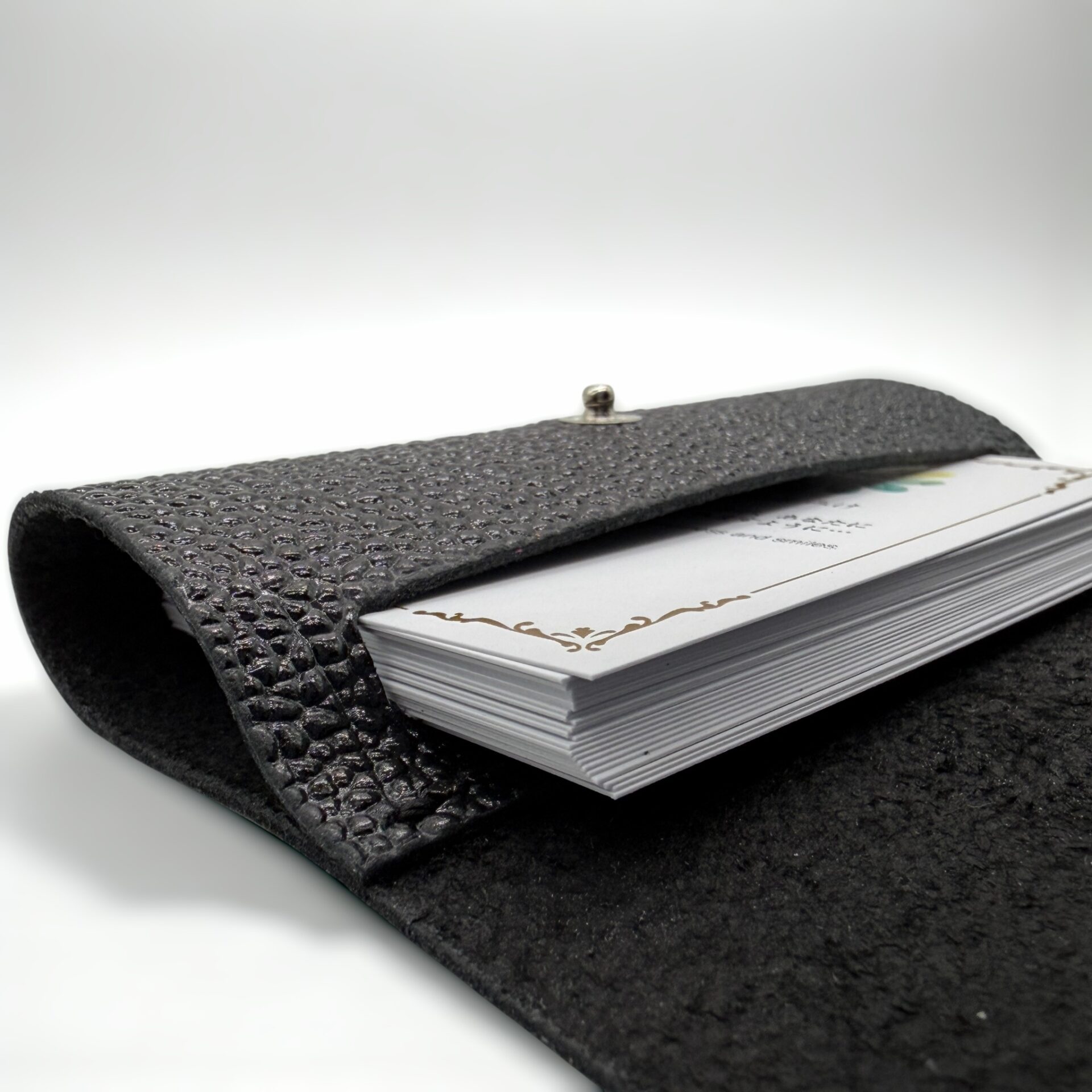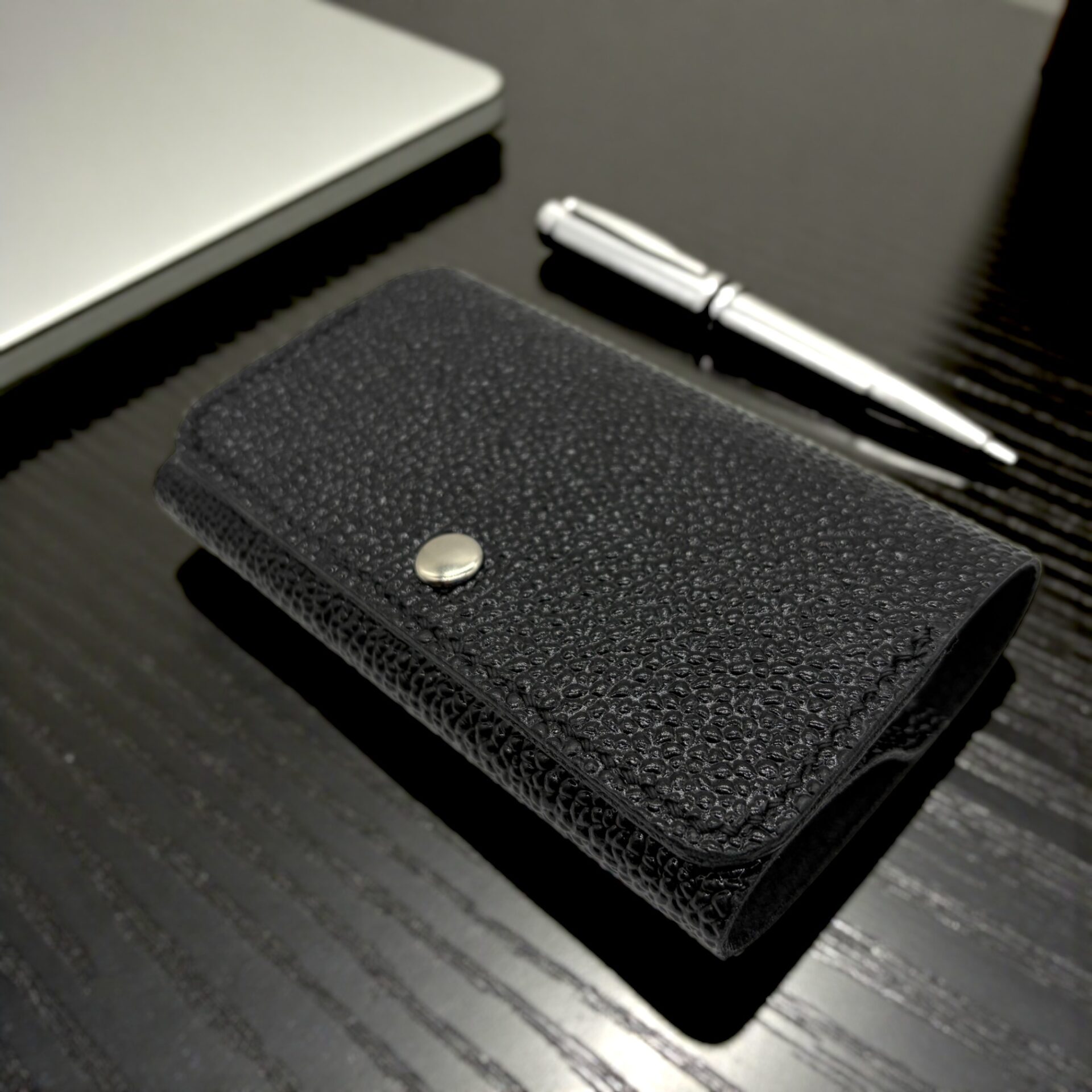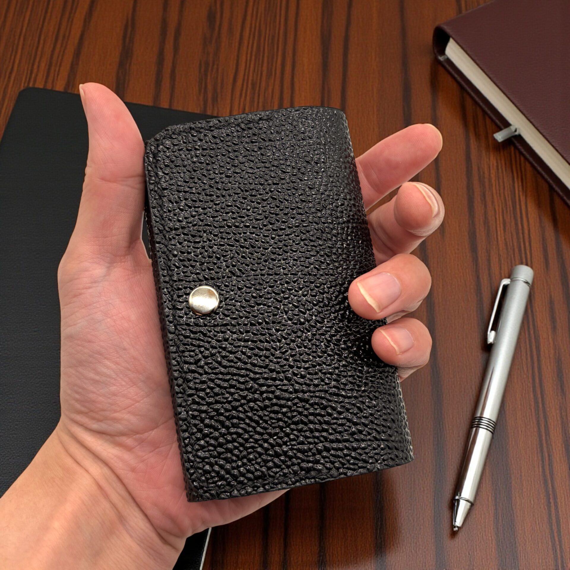 本革 大容量名刺入れ|約50枚収納 ブラック×シルバーホック