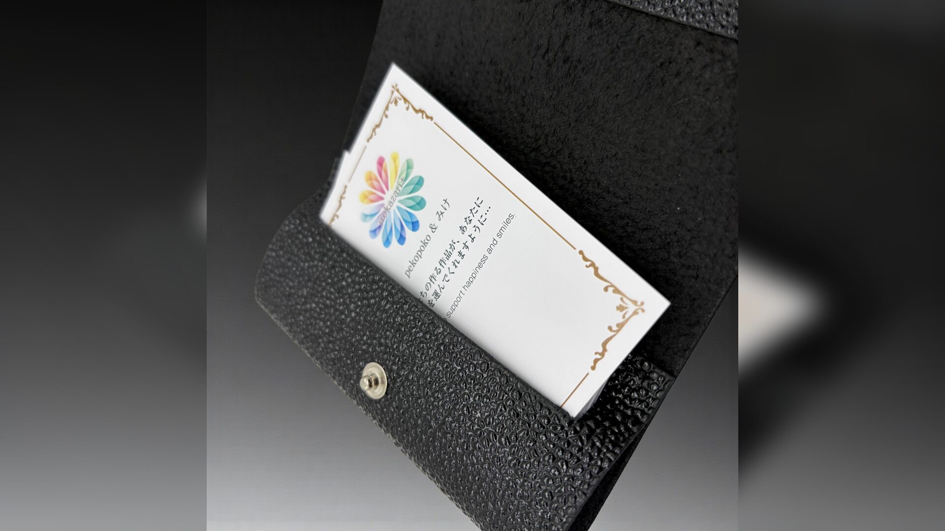 中は名刺を入れるポケットが1つだけ。仕切りや余計なパーツを付けず、迷わず使える構造にしました。