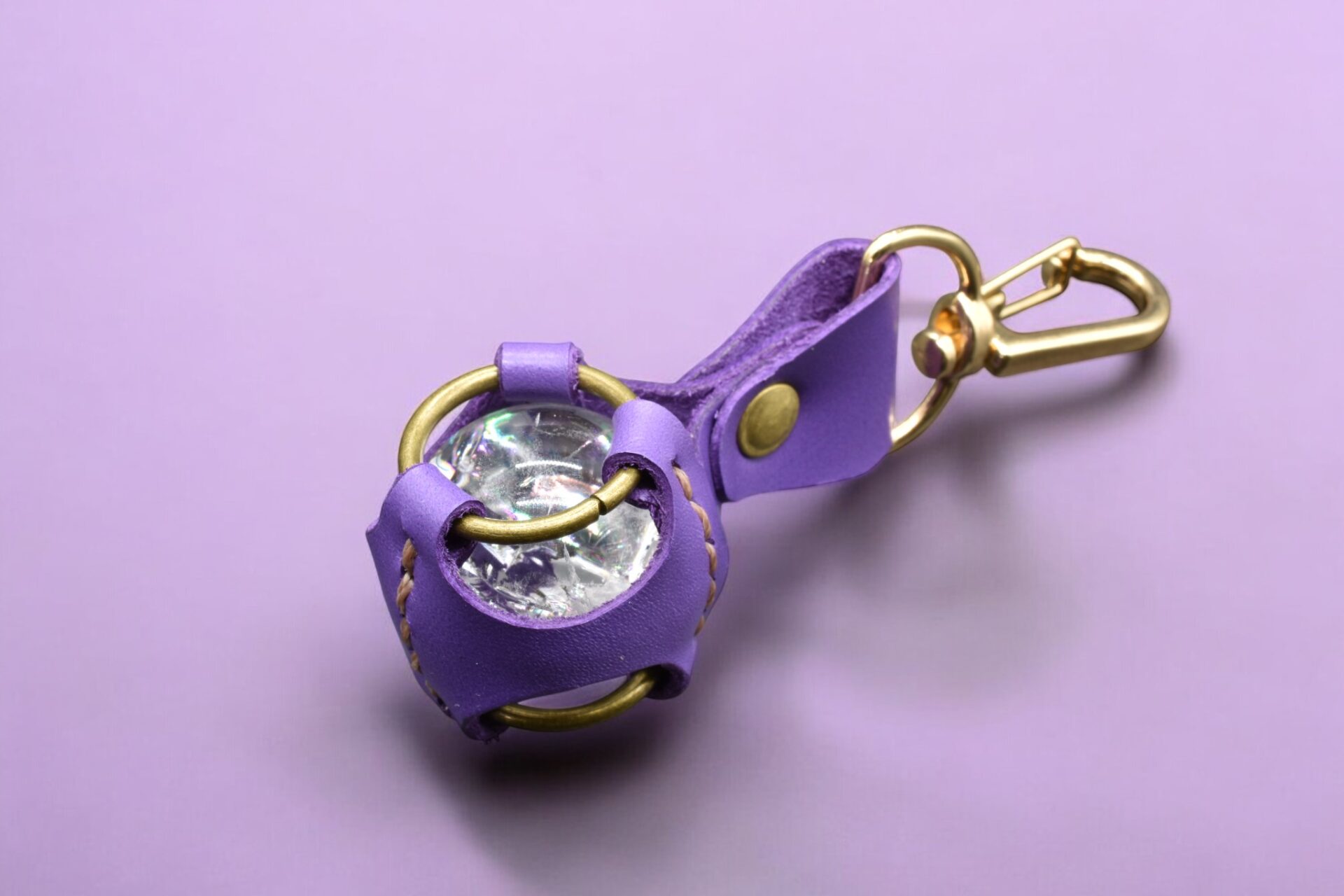 週の締めくくりは、紫レザーと虹入り水晶のキーホルダー再販。