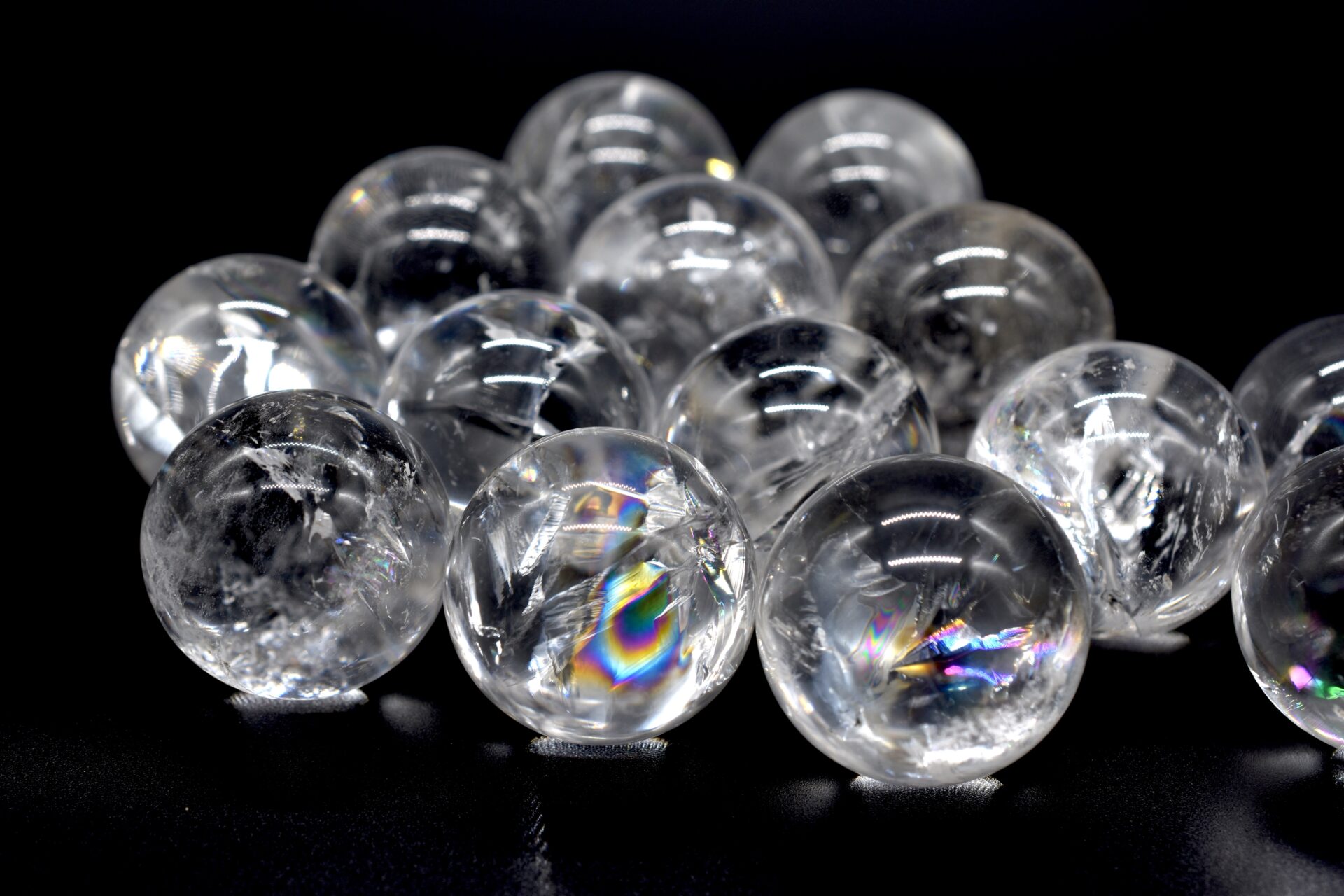 虹入り水晶(アイリスクォーツ)のまる玉が15個ほど届きました。